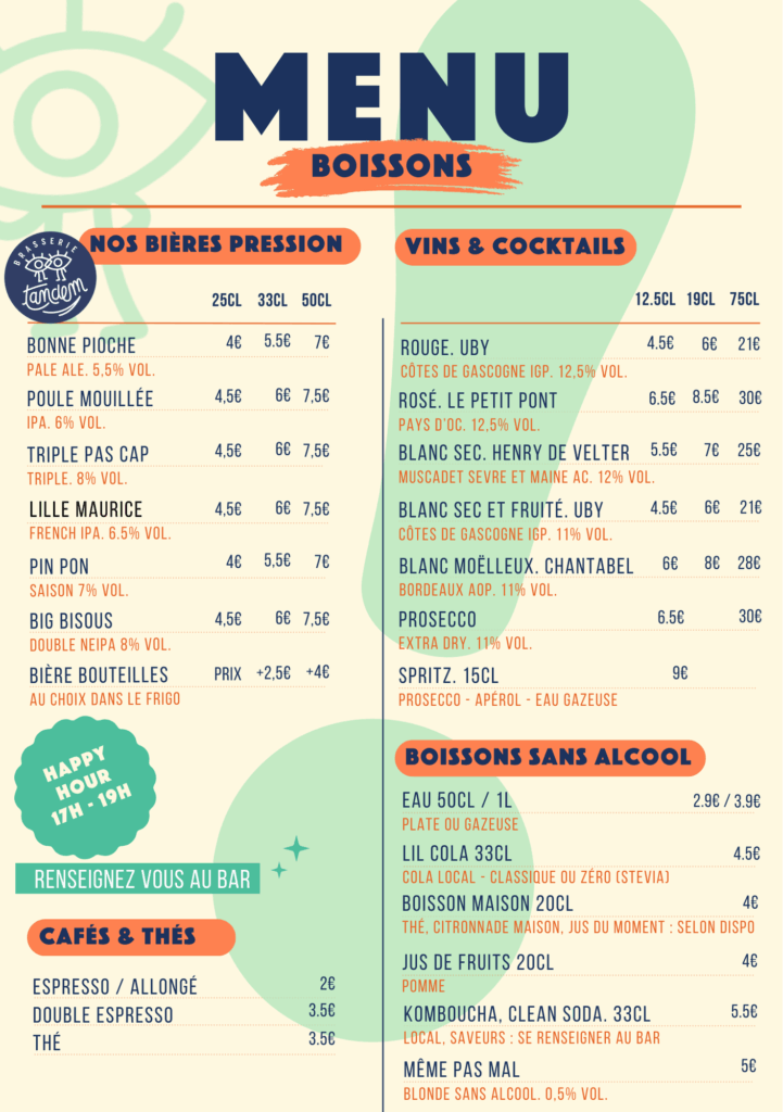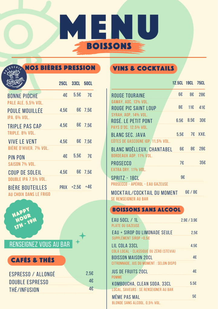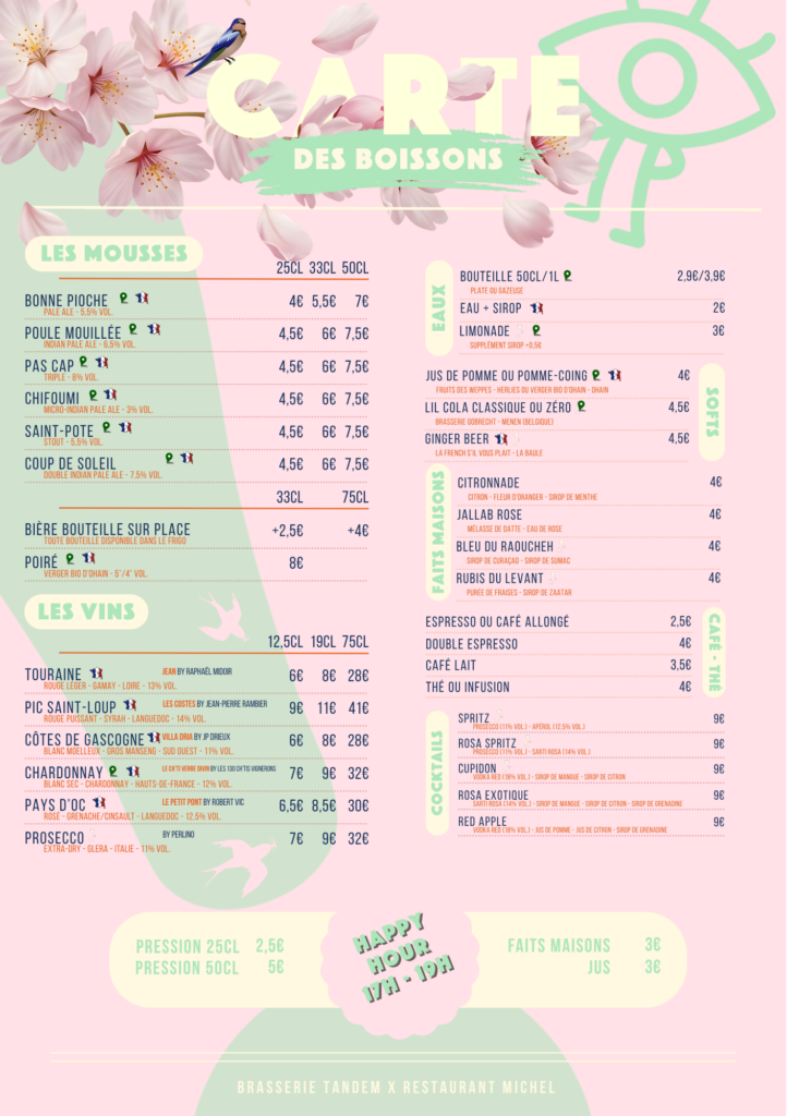 Happy hour tous les jours de 17h à 19h !